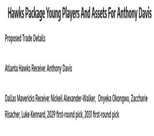 名记Shams在后续报道中指出,老鹰队之所以如此廉价卖掉特雷杨,提升薪金灵活性以在交易截止日前引进另外一名顶薪球员是重要原因之一,而浓眉哥是他们的头号目标。