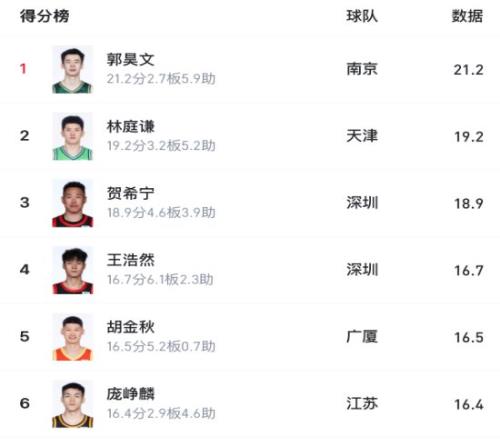 要知道,深圳外援史密斯场均拿下21.3分,排在得分榜第5位,贺希宁和王浩然非但没有被影响,甚至能跟外援组成“三巨头”。